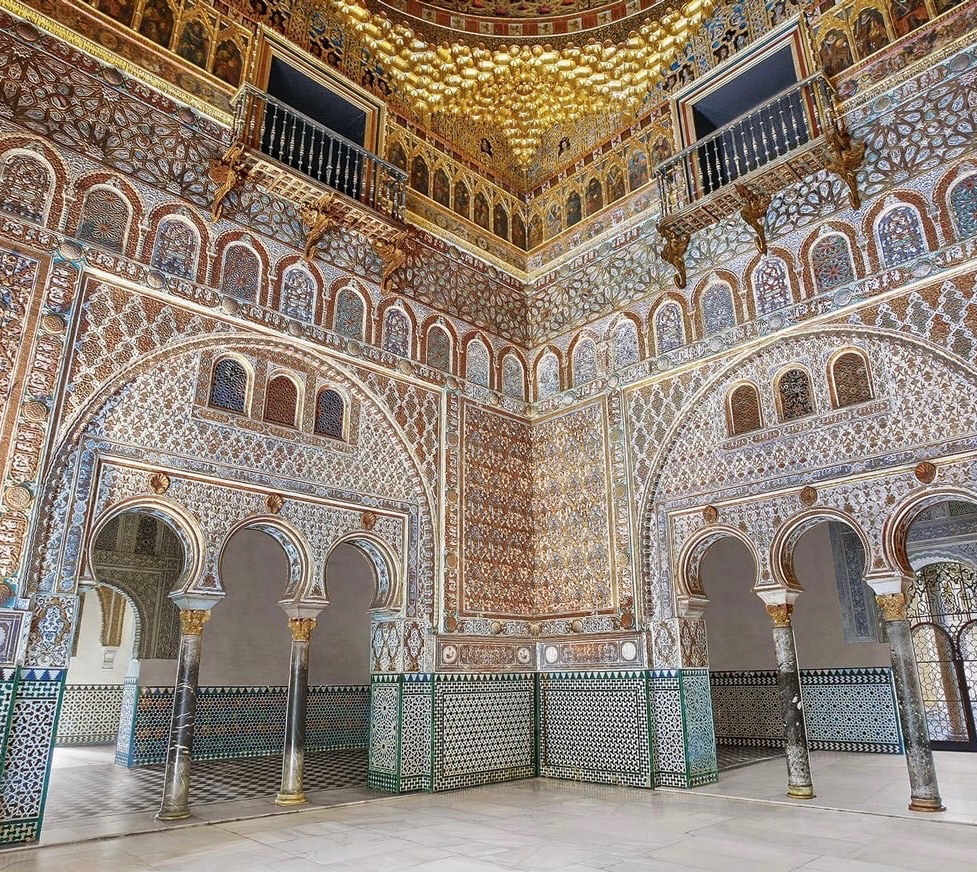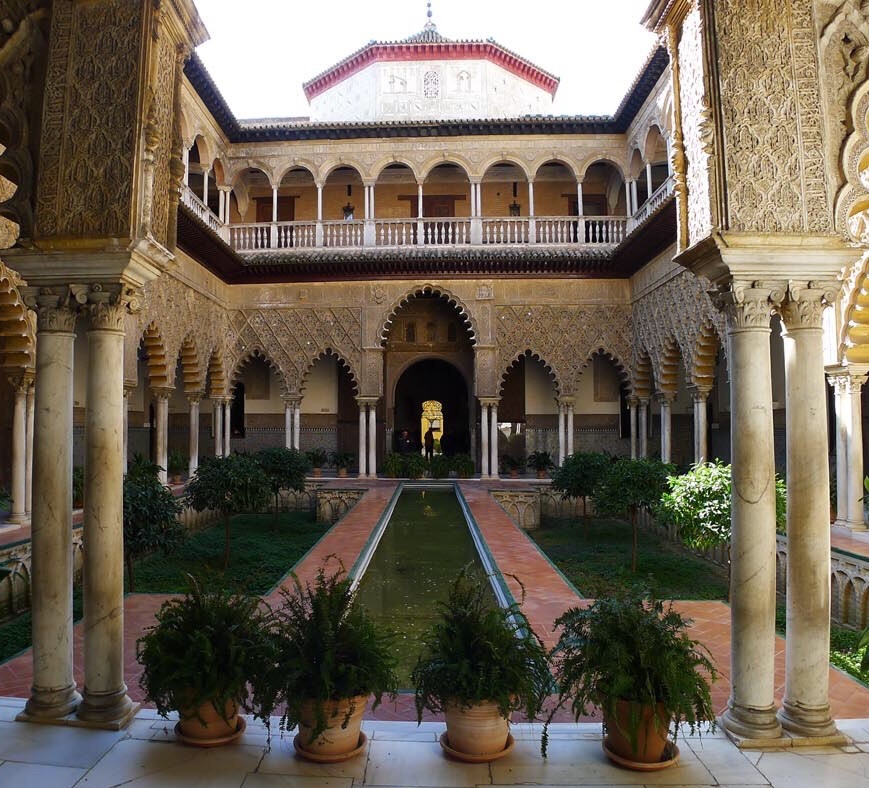 The structure was rebuilt by King Peter of Castile and is considered to be the finest example of mudejár architecture in the world. The term Mudéjar refers to Muslims living in a Christian community and with its mosaics, star shaped ceilings, keyhole doorways and multiple gardens it certainly does reflect the Moorish influence. To this day the King and Queen of Spain maintain an apartment there.